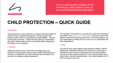 As a Goodpush Member, you have access to our library of free resources – all related to running a community skateboarding program. The best part is that you can also contribute content to this library and share your knowledge globally! If you have any guidelines, research, templates, or examples that you would like to share in the Goodpush library, contact goodpush(at)skateistan.org